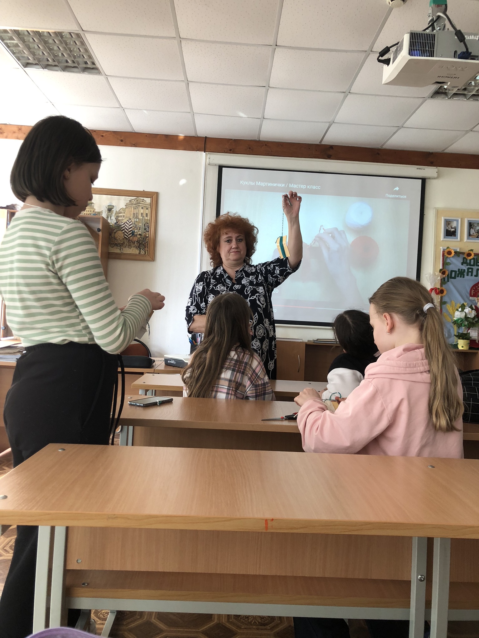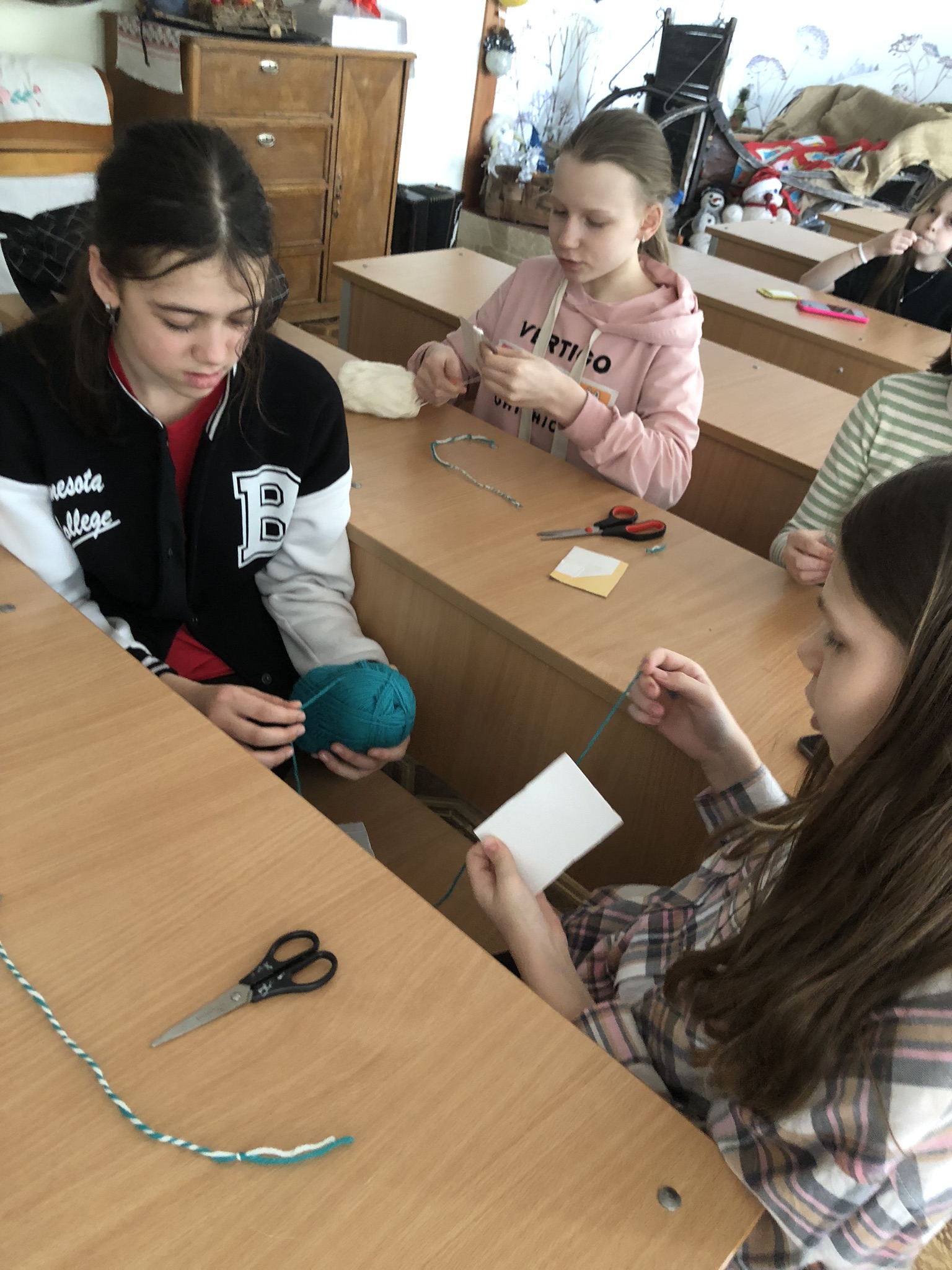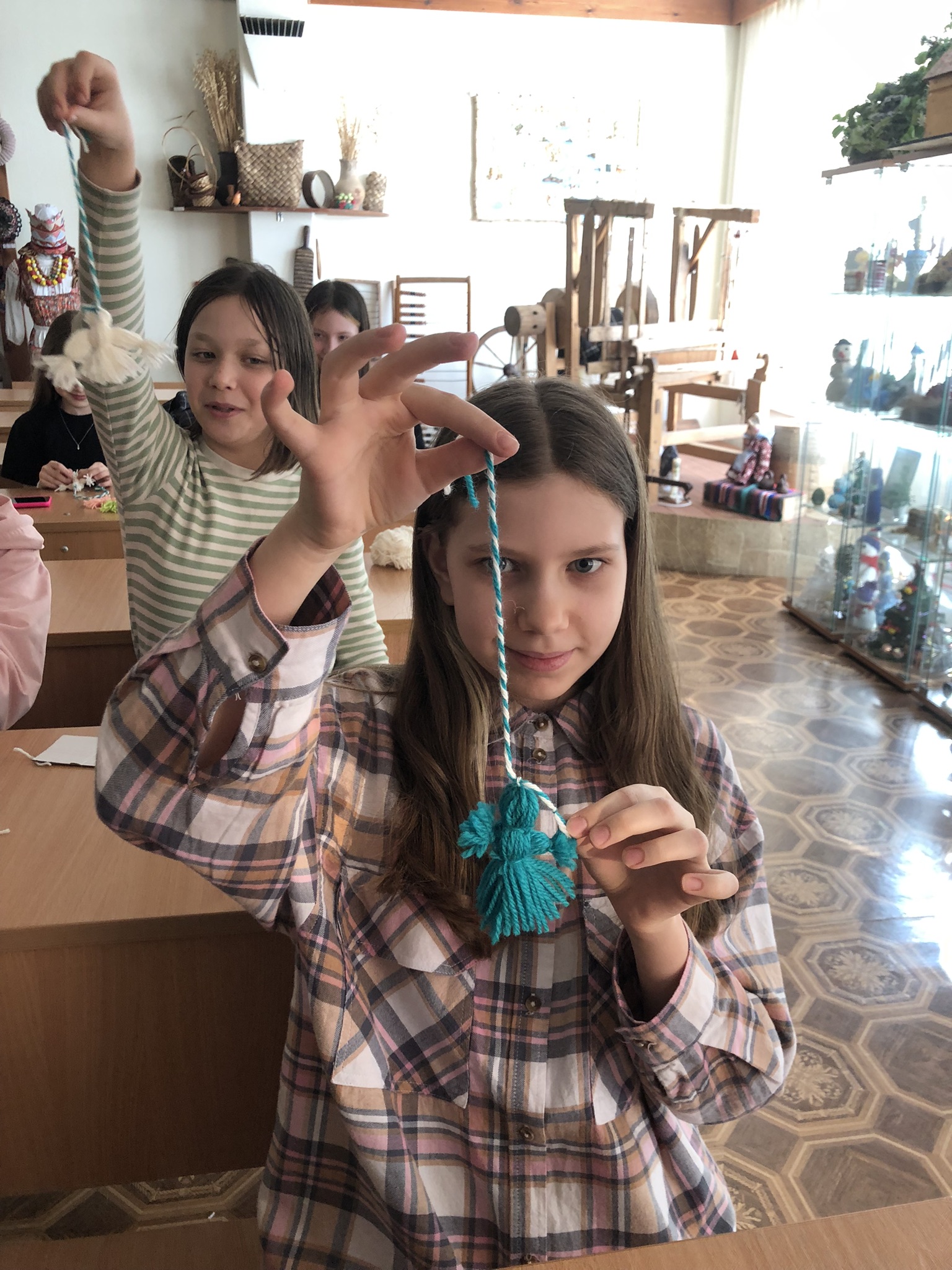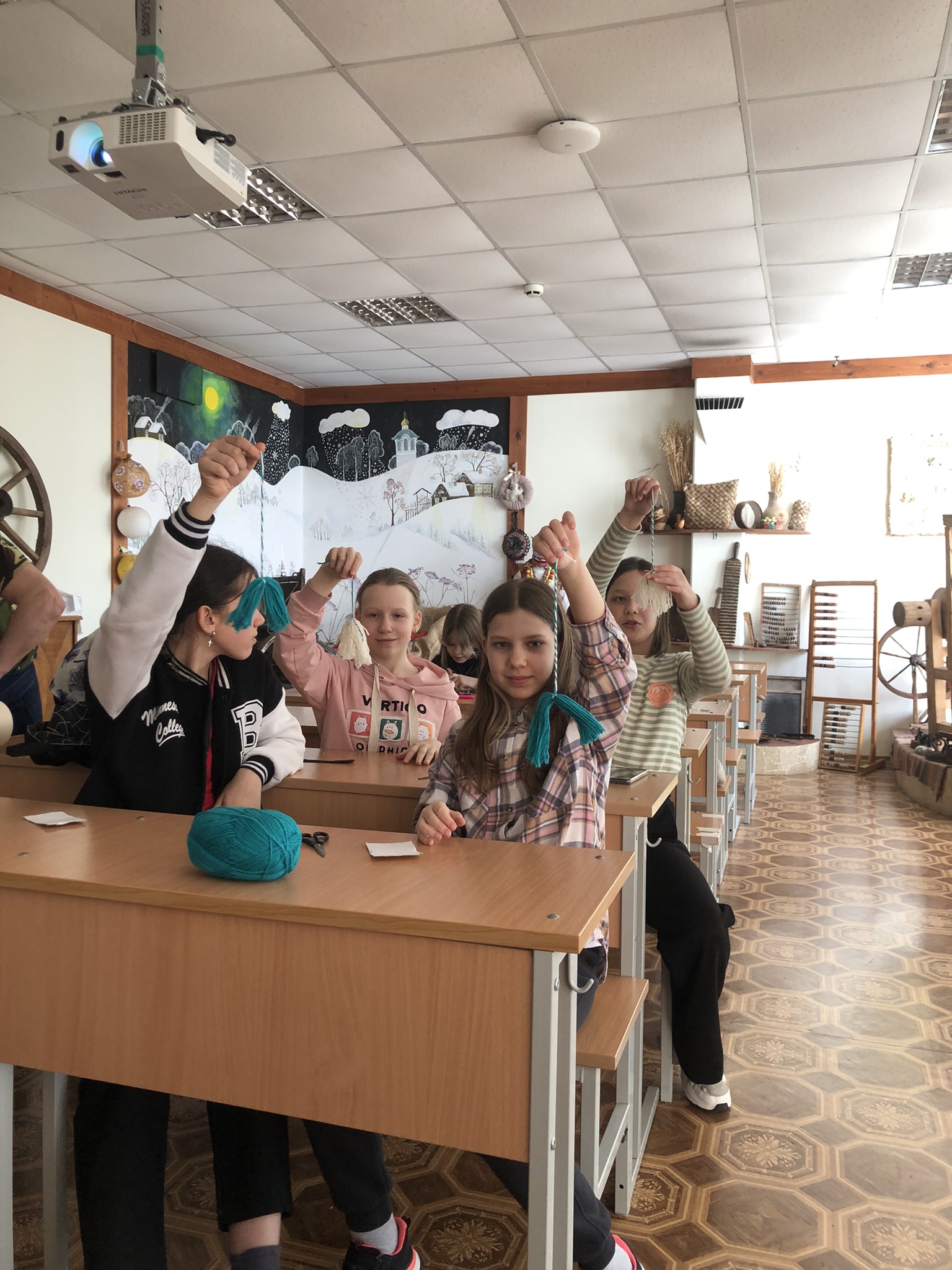 Воспитанники школьного музея «Русский быт» посетили занятие по изготовлению весеннего оберега из вязальных ниток
